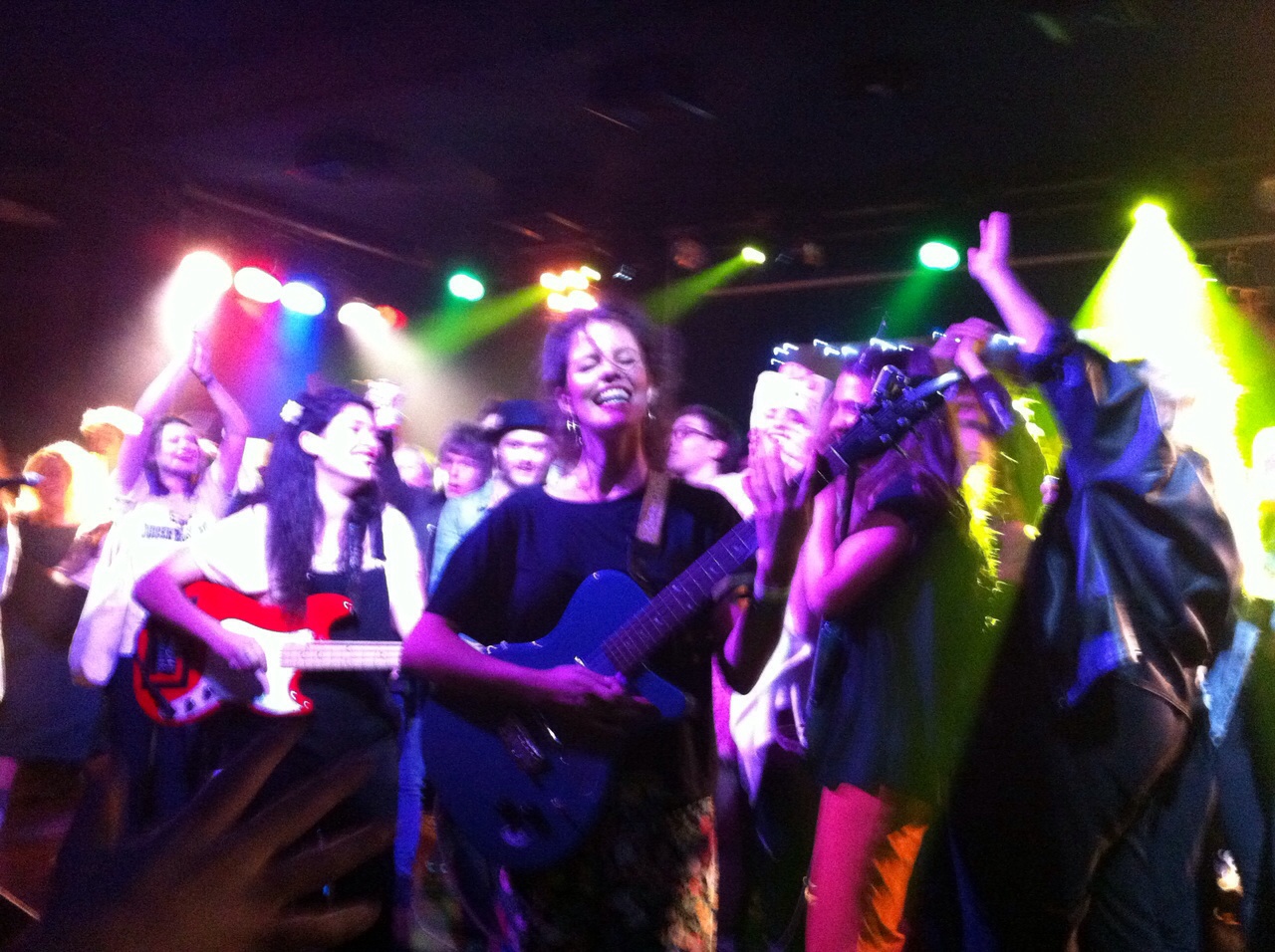Ana puts her guitar back, looks at Carlotta, why not? The bassist shouts: “If anyone wants to come on stage, please, feel free.” The people don’t wait to be asked twice. A wave of partyers out of their minds invade the stage.